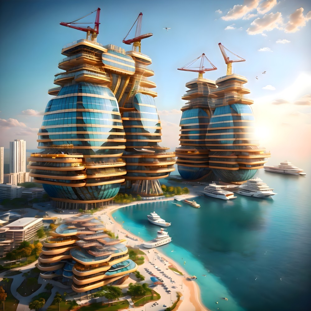 Sky High + Waterfront. SK:182:241213. www.omarsolh.com. Futuristic Waterfront Skyscrapers Underway