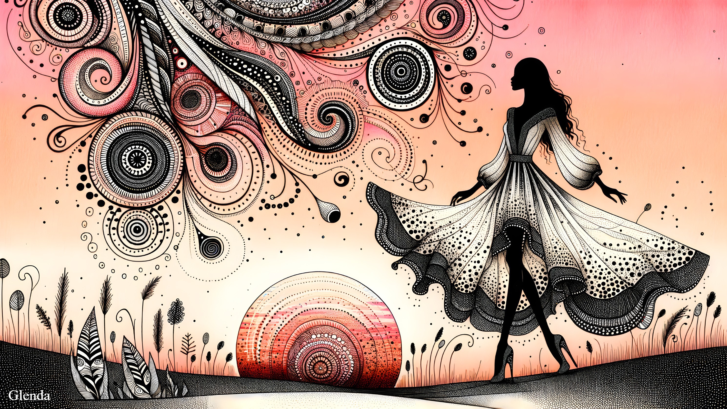 Whimsical Woman in a Zentangle Landscape
