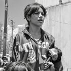 Prompt: Futuristic neo-Marxist rebel from 2319 A.D., adorned with intricate neural implants, long dreadlocks intertwined with colorful beads and tribal jewelry. Cyberpunk setting with neon lights reflecting off metallic surfaces, holographic displays in the background, augmented reality interfaces glowing, advanced technology seamlessly integrated into the environment. Bold and vibrant color palette of neon blues, purples, and greens contrasting with dark, industrial tones. Dramatic lighting casting dynamic shadows, enhancing the rebel's determined expression and unique style. Detailed digital illustration combining elements of sci-fi, cyberpunk, and dystopian aesthetics, high-resolution, intricate details, by a visionary artist known for blending futuristic themes with cultural influences.