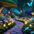 Prompt: "A magical fantasy garden glowing with soft, ethereal light. The air is filled with fluttering fairy dragonflies and luminescent butterflies, their delicate wings shimmering in pastel hues of turquoise, lavender, and gold. Twisting vines and oversized, otherworldly flowers bloom in vivid colors — glowing mushrooms and sparkling petals line cobblestone pathways. In the center, a serene pond reflects the twilight sky, filled with graceful koi fish in dazzling patterns of orange, white, and shimmering silver. Floating lily pads glow faintly, and bioluminescent fireflies hover above the water. Enchanted trees with hanging lanterns and tiny fairy homes nestled in their trunks surround the scene, creating a hidden realm of peaceful magic and wonder."