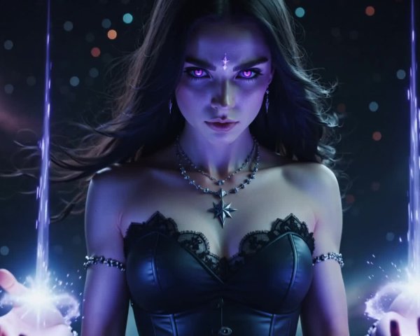Intricate Network of Blue and Purple Tendrils with Sphere