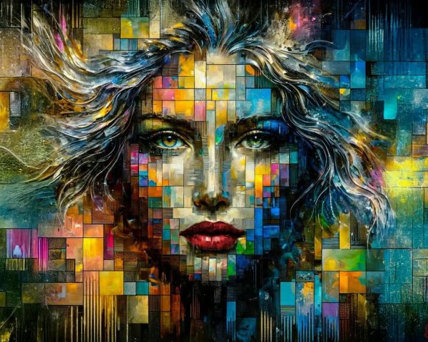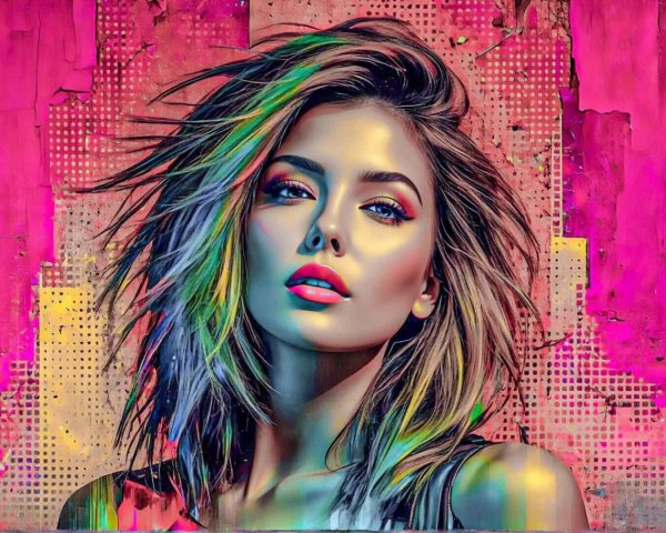 Prompt: Geometrical portrait, stylized. orphism and line-art fusion, plasticity 1.3, psychedelic Juminocore and abstract scratchbook art blend, phosphorescent, gradient inking colors, fluorescent, stylized line-art illustration featuring a temptress, serene expression. Triadic color scheme light-blue warm yellow light-pink, blotting, very defined lissajous lines, beautiful line-art, stylized linocut by Earl Moran, parallax occlusion 1.3, sawtooth wave, impossible light transitions, liminal, micro-pen lines adding depth, dyed by Man Ray, style by Jackson Guice, layered, moody, demonic, strange, ghostly, parallax occlusion 1.9, opaque, translucent, layered, eerie, dark fantasy reminiscence by Stan Lee, sgraffito in zentangle lines reminiscent of Francis Bacon and Georgia O'Keeffe, lines by William Bradley, style mix of American Gothic and sci-fi by Emshwiller, cel-shaded, debeh, stencil, catenaries, bokeh, Riemann's geometrical spheres, translucent, gradient dyed inking colors, only curves, zentangle, fractalisation, comic book cover art, op-art by Georges Seurat, intricate patterns, colorful, 3D effects, sharp focus, detailed linework with grungy allure, tints by Arshile Gorky, patterns, lineage designs. Stan Lee's and Frank Miller's visual flair. Ethereal surface with smooth graceful curves, self-similarity evident in intricate patterns, fantasy psychedelic octane render creating mesmerizing fractal art. Ethereal and haunting scene, intricate and detailed, eerie shadows, intense and vivid colors, intricate patterns subtly integrated, Alex Grey-inspired style, visionary art influence, flames engulfing the background, fantasy iconography, cryptic and enigmatic atmosphere, high-definition quality, dramatic lighting, raytraced shadows, high contrasts, foreboding and unease, intricate linework, visible textures, estranged metallic colors, revealing, seductive, pointilism,
