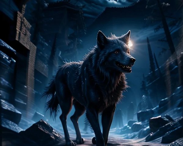 • Prompt: A dark animal soul crawling under the moonlight in the glowing night onimous feelings