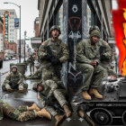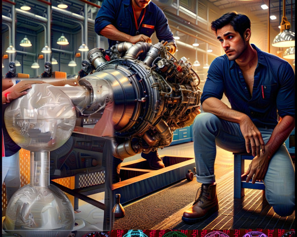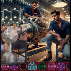 Prompt: A surreal scene featuring a humanoid figure composed of intricate mechanical and organic elements, with flowing hair resembling vines and flowers blended with mushrooms. The figure is extending a red mushroom with white spots towards a young boy, whose wide eyes are filled with curiosity. The background is dark and textured, enhancing the contrast with the bright red mushroom. The overall atmosphere conveys a mix of wonder and a hint of mystery, blending themes of nature and technology.