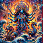 Prompt: The vase is glued together from crystal fragments that form a vortex, colored enamel and wood resin and stands on a table in a gazebo with magnificent giant fantastic flowers in an evening summer garden full of wonderful luxurious trees and flowers. The rays of sunset penetrate the entire composition, double exposure, translucent layers with a smooth texture, emphasized by thin golden contours, fill the female figure near the vase, emphasizing their shape. The background creates the effect of depth. The overall aesthetics should evoke a feeling of fluidity and natural beauty, reminiscent of watercolor techniques combined with a surreal mood, expressive painting, careful detailing with thin strokes of a pen, intricate patterns, fantastic elements, unity with nature and space. The work combines intricate details with vibrant textures, hyper-maximalist style, ultra-realism, 8K rendering 8K 3D