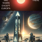 Prompt: scifi paperback art-style, space travel, the fractal frog with glossy psychedelic skin showing swirling star systems, reaching new dimensions, stars and planets, alcohol ink with black, π, white, golds, coppers and smoke grey, olive green, pink, red, style of Benoît Mandelbrot, John Schoenherr, Klaus D. Schiemann, Tymofiy Boychuk