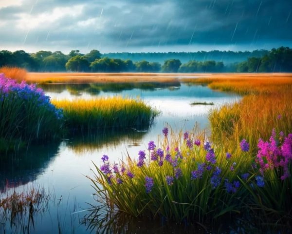Prompt: A mystical forest bathed in radiant neon light, where trees and plants pulsate with vibrant colors, casting an ethereal glow on fairies and mythical creatures amidst the foliage. In a garden nestled within the forest, iridescent flowers and shrubs shimmer with fluorescent hues of pink, orange, and green, set against a dark, velvety sky. Soft, luminescent light dances across the landscape, highlighting the delicate features of luminous dragons, unicorns, and phoenixes as they pose dynamically, their glowing colors illuminated by subtle, shimmering effects. A majestic waterfall cascades into a radiant pond, its neon tones refracting off the rippling water, which shimmers with bright blues and purples, as if infused with an inner light, reminiscent of the dreamlike quality of Mark Rothko's color fields, the vibrancy of Syd Mead's futuristic landscapes, and the whimsical charm of Brian Froud's faerie