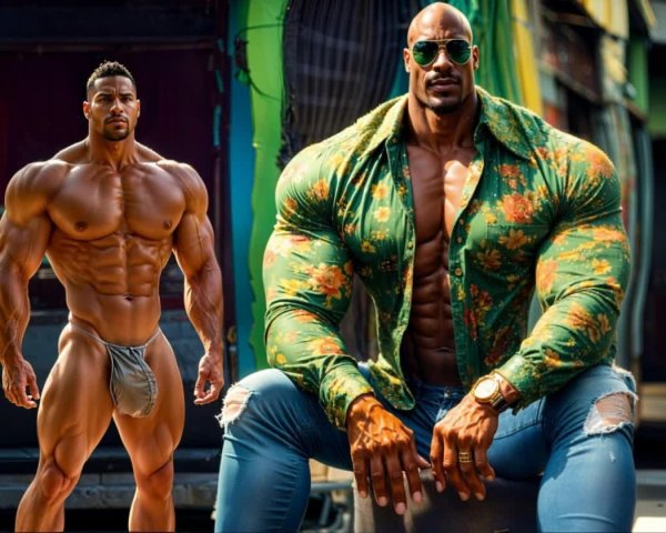 Muscular Man in Fitted Shirt Against Dramatic Sky 1d