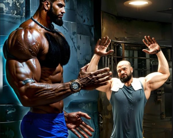 Muscular Man in Fitted Shirt Against Dramatic Sky