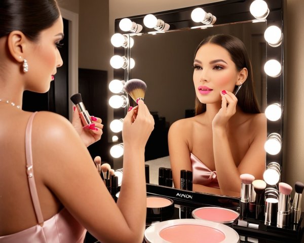 • Prompt: 1298. “Model applying Avon blush in mirror, natural lighting, candid modern glamour.”