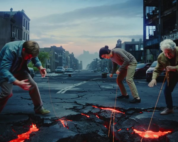 Prompt: A haunting painting in the style of classical masters (Hieronymus Bosch meets Caravaggio). Realistic figures of modern-day individuals, entangled by their souls so bound by addiction - diverse ages, backgrounds - each trapped in addiction's grip, by an almost dense string of life; their very souls pulled down into the depths, wrapped around his fingers. From each person extends an ethereal, blakish grey glowing soul-string that descends through fractured earth, through geological layers, down into the infernal depths.Below, a demonic puppeteer figure controls these strings, their very souls like a marionette master - fingers delicately manipulating each life. The devil's expression: patient, calculating, almost tender in its cruelty. The addicts above move in unnatural poses, their faces showing both torment and compulsion.**Style details:**