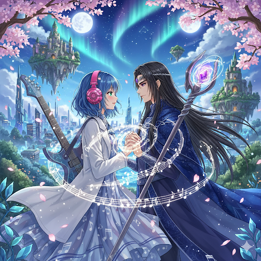 Prompt: Lucifer son of Magic and Chaos, a beautiful hero bearing the light of divine Love yet the deepest darkness of all. In perfect balance between light and dark. Make him more the focus of the image and the background more space beauty show him looking at the camera with his dark helmet covering his beautiful face but flowing brown hair cascades over his white armour glistening with gold and red