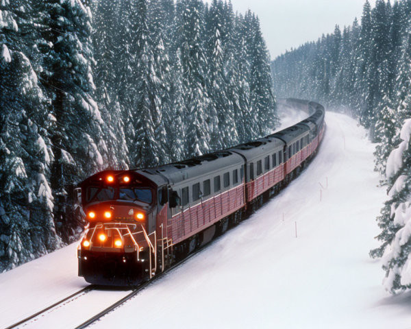 Vintage Train in Snowy Landscape with Frost-Covered Trees