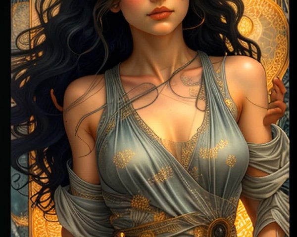 • Prompt: A close-up portrait of a woman embodying the light side of the Force. Her face is depicted in natural colors, her positive will reflected in her intense gaze. The portrait is embellished with arabesques in the background as well as harmonious, abstract brushstrokes. Light mist adds a mystical touch. The style uses chiaroscuro for an intimate light.