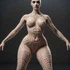Stylized Figure with Intricate Body Art and Tattoos