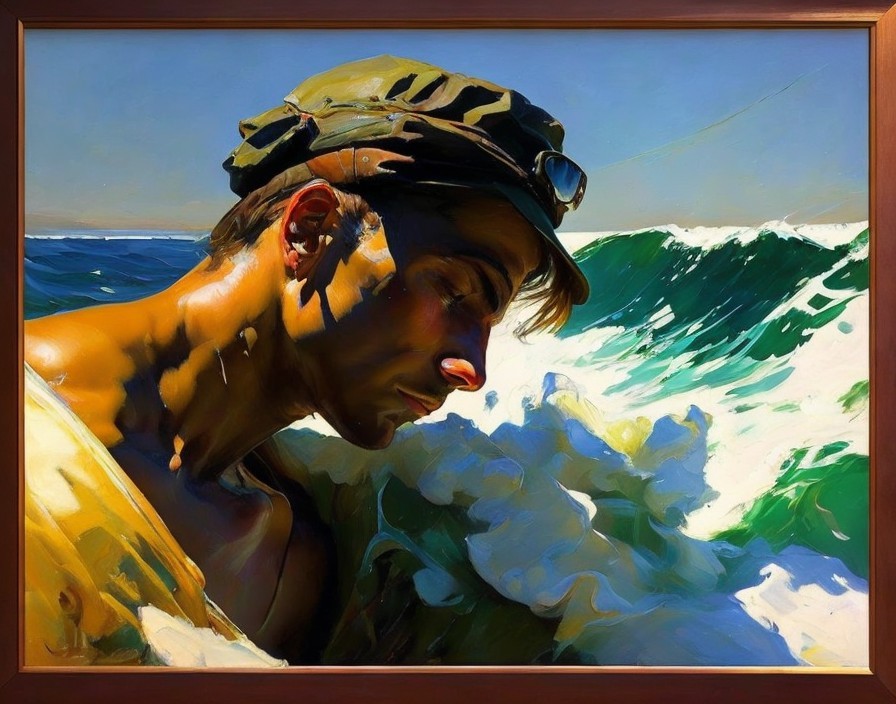 • Prompt: in Joaquin Sorolla style a full body fifties pin-up model, She wears shiny red high heels.