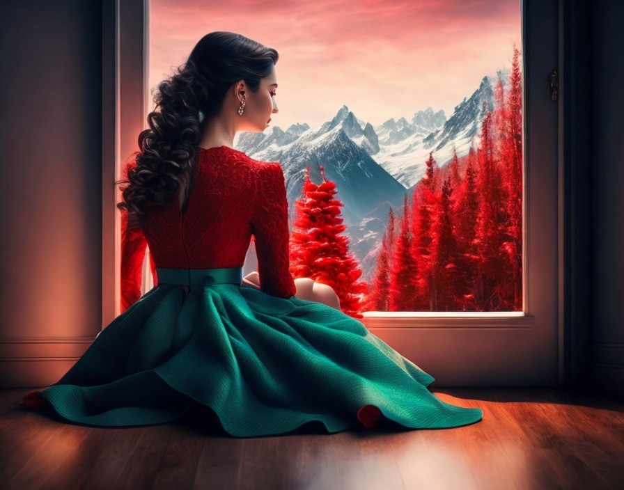 Prompt: A dream image for a good night. A little girl with her mother under a blossoming apple tree. The girl has black hair and the mother has grey hair. Both look at each other lovingly.