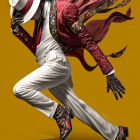 • Prompt: A formidable Korean fashion icon, their face a mask of serene power, strides with lethal grace. They wear a stark black Hanbok jeogori over blood-red baji, crowned by a towering, blood-red gat hat. They lead two mythical, elongated Hounds of Heaven, their silken white fur adorned with miniature, meticulous Hanbok jackets in black and blood-red. The beasts are tethered by taut, gleaming ribbons of liquid crimson. The scene is a masterpiece of Gongbi painting: hyper-detailed, with vivid color blocks of jet black, violent red, and ghostly white against a gold-leaf background. The model's black leather boots crunch on unseen ground. A hyper-stylized, royal-core fashion illustration that crackles with energy.