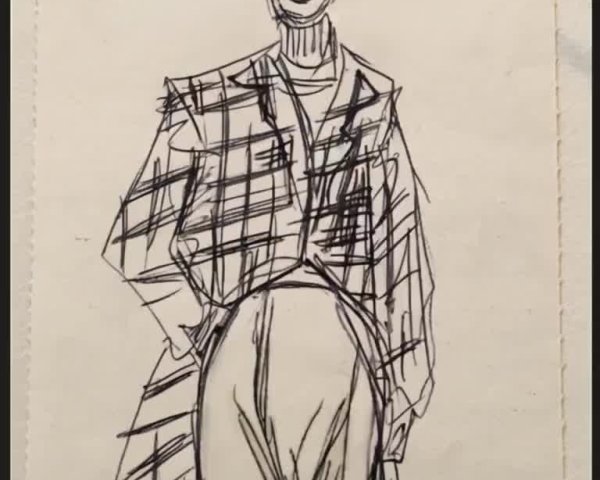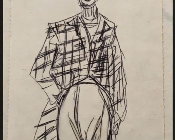 Prompt: "Simple black and white line drawing of an athletic lady, with large orange-brown, blowball dreadlocks, white t-shirt and bare feet. She is also sketched in a minimalist style with loose ink strokes. The illustration has a casual, artistic feel with imperfect lines and a hand-drawn aesthetic. No color, just black ink on white background."