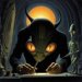 Prompt: A solitary skunk, its fur patterned with delicate frost and snowflakes, stands at the edge of a silent, snow-covered forest. Moonlight filters through the bare branches, casting long, eerie shadows. The style is a flat illustration with bold graphic lines, emphasizing a minimalist yet impactful composition, similar to the work of Carson Ellis or Isabelle Arsenault.
