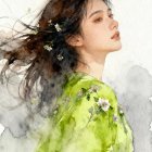 Prompt: An ultra-detailed photograph shows a full-length, athletic, beautiful, and slender 25-year-old woman with a realistic body. capturing a stunning woman stand with super-long, straight blonde hair Her brown eyes radiate confidence with a radiant smile stands surrounded by a tapestry of roses, lilies, jasmine, and dahlias. She wears a whimsical mini dress crafted entirely from delicate flowers, her golden-blond hair cascading softly over her radiant face. El fondo realza la silueta de la mujer. Su cabello luce liso y bien definido, con suaves notas musicales y el nombre "Luis Arcy" flotando suavemente alrededor de sus pies., enhancing the magical atmosphere of this enchanted woodland setting.