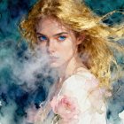 Prompt: Oil enigmatic mystical painting cracked vintage canvas art surrealism with intricate plot young skinny woman with amazing elegant face organze flowing mini dress ( full front body view) walking down clouds, mid shot, look on observer, bright vibrant indigo blue, ivory, white-blue and light beige colors and step gradien hues, gold inclusions, concave lens, mystical illusion, remeniscent mystical style and colors of By Jamie Heiden, Daniel Merriam, Paul Klee, Karol Bak, Dee Nickerson, Iridescent watercolor and ink unique technic A serene, ethereal portrait of a ethereal gorgeous beauty woman with flowing hair blending effect into a dreamy fantastic unparallel enigmatic heaven with unreal mirage. Her eyes reflect tranquility, while a sunset casts soft colors over distant seaboats. accent silver ink outlines, stained blur colors, extremely detailed, high definition, crisp quality, ultra detailed background, 8k perfect composition, dramatic, insanely detailed dripping torquese droplets, dreamy reality, Ink Drawings by Greg Olsen, Patrice Murciano, Artgerm, Carne Griffiths, Andrew Atroshenko, WLOP, Anne Stokes, vibrant deep colors, hyper-detailed, intricately detailed body, frontlight, the focus is on the cracked textures and the 3-dimensional highlighted figures of the woman and the moon that appear like a mixed media collage mosaic tiles elements with smooth corners, silver lace framefork. Soft light illuminates the dreamlike scene. trending on Artstation fantasy ethereal hdr Picasso Van Gogh acrylic art Mixed Media Gustav Klimt impasto Surrealism vibrant colours celestial 3D shading Uhd enchanting enigmatic richly textured Starry night sky 3D relief grunge texture metallic gold overlays Odilon Redon and Luis Royo
