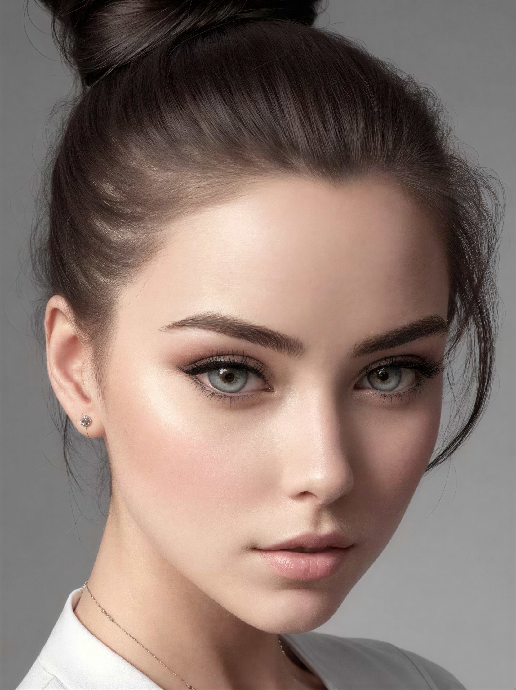 Prompt: A stylized illustration depicts a young woman, likely in her teens, rendered in blue pen or pencil on a white background. She is positioned centrally in the frame and facing the viewer directly. Her hair is styled in a high bun. Her large, expressive eyes are the focal point, with prominent lashes and a slightly narrowed gaze, conveying a thoughtful or perhaps slightly annoyed expression. Her eyebrows are furrowed slightly. She has a delicate, slender neck and appears to be wearing a simple tank top or sleeveless garment. The drawing style is simplistic yet detailed, with visible lines and shading adding depth. The lighting is soft and even. The atmosphere is clean and minimalist, highlighting the character's facial features and the artist's linework.