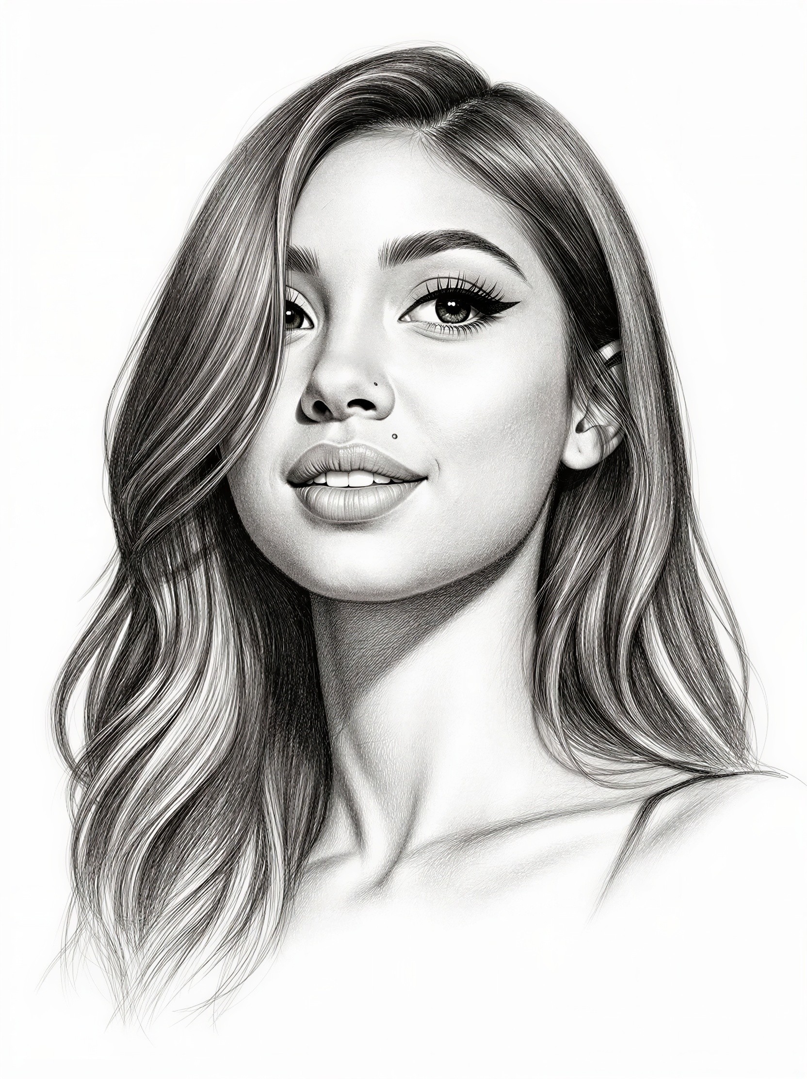 Prompt: Close-up sketch of a beautiful blonde girl with long curls and a half-turned smile, wearing a fur cape with a hood and lace embroidery, holding a basket filled with spruce branches and fir cones. The scene is set against a white background, depicting a winter wonderland with fluffy snow, frost, hoarfrost, and sparkling snow. Misty, atmospheric haze with sfumato effect, illuminated by ethereal fantasy light. The background features folklore-inspired houses with turrets, golden domes, carved wooden fences, and carved shutters on windows, with light emanating from within. The entire scene is framed, rendered in a hyperdetailed, ethereal fantasy style reminiscent of Thomas Kinkade, with a color palette of white, blue, silver, gray, and bronze, emphasizing sparkling snow and atmospheric mist.