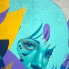 Prompt: fine art landscape by Marc Chagall and Paul Klee, shining paints, glowing lights, orbs, mixed media art. face of beauty. Buildings made of eyes and glass.