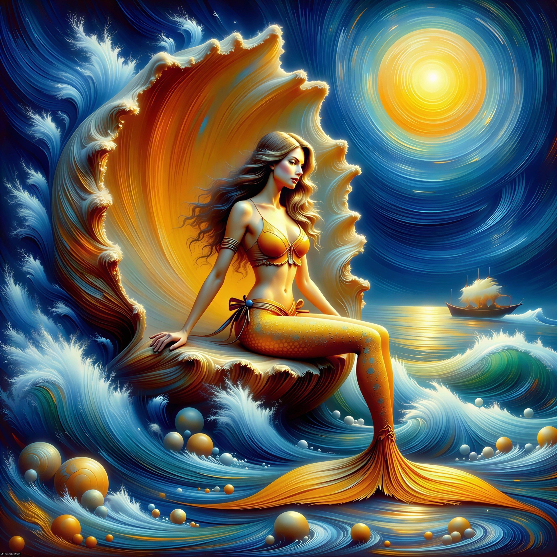 Prompt: Portrait of a gentle young Ariel, a mermaid Girl , Festive Christmas New Year style , New Year festive atmosphere , The style is Neo noir , sentimentalism ,elegant, Impressionism , Hans Holbein , Auguste Renoir , Franz Xaver Winterhalter , vintage, oil, masterpiece, high detail, art station