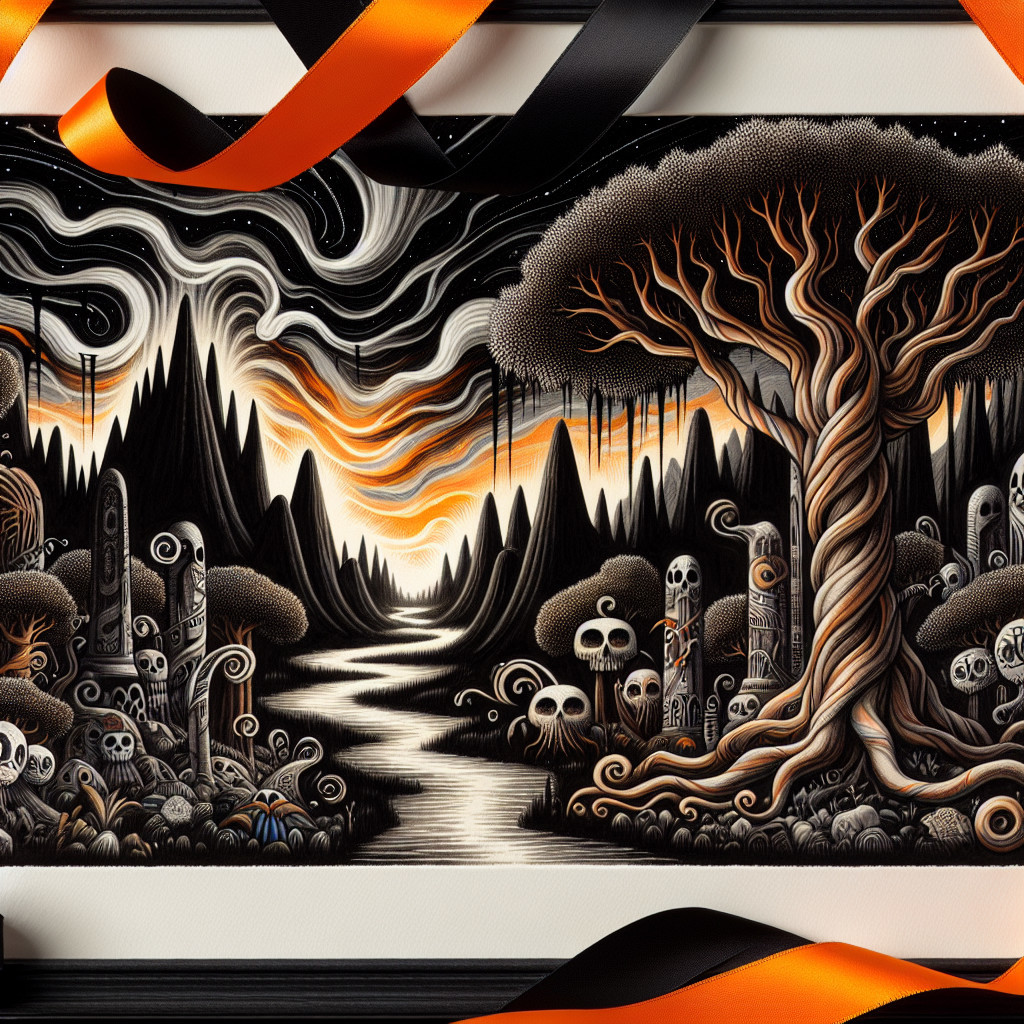 Style: dark fantasy, Halloween horror aesthetic, gothic surrealism, cinematic lighting, ultra-detailed, painterly realism, moody atmosphere.