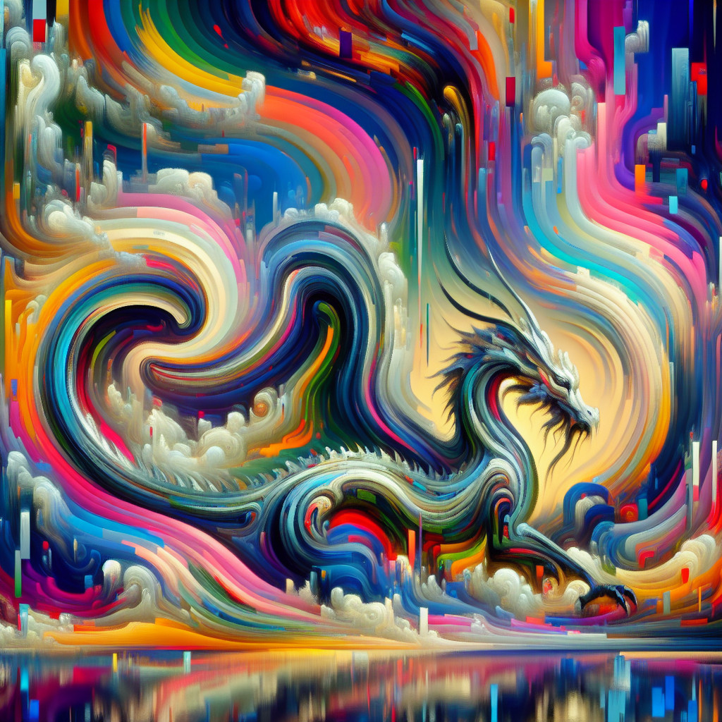 Prompt: Obscured and distorted visuals, blurry and opaque elements, reminiscent of TV static and phone screen glitches, unfocused camera aesthetic, surreal painting with minimalist dragon, abstract shapes, dreamlike atmosphere, digital art, high resolution, vibrant color palette with hints of neon, dramatic lighting casting shadows, by Salvador Dali and Yoko Honda, Behance.