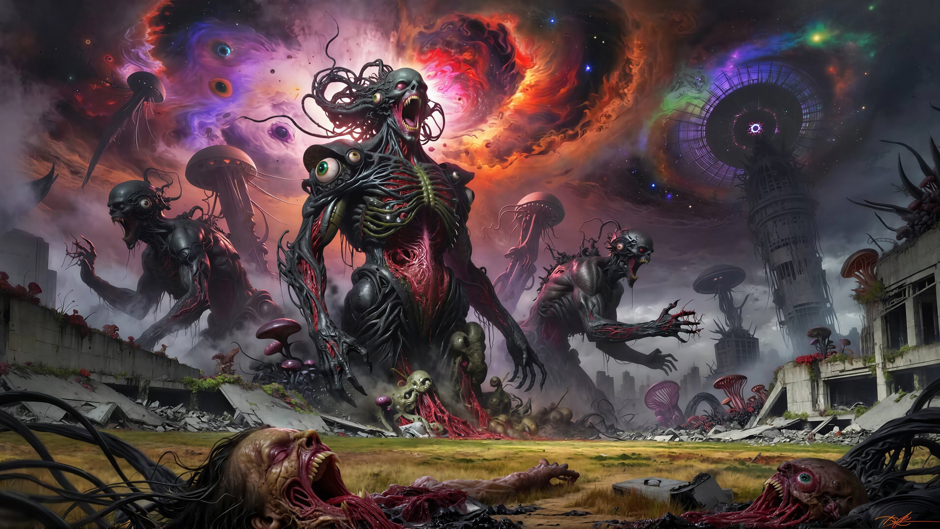 Prompt: Nuclear damaged, at war with Lovecraftian genetic disaster gods.