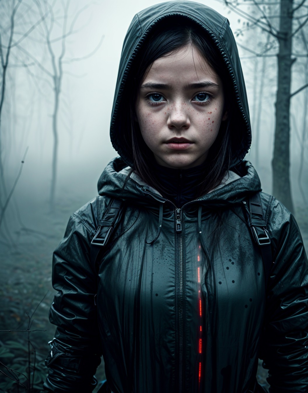 Prompt: beautiful candy cane colour hair lady wearing red and silver sparkly colours on her makeup.red lips wear long white and red fluffy hoodie matching her baby gnome cuddles on her arm magic winter in wonderland background whiscmal 3d digital finely detailed