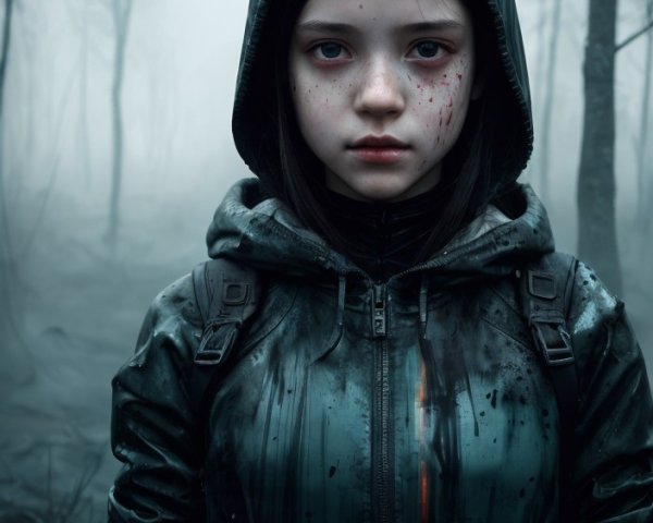Prompt: Low angle medium shot, illustration, a small, slender young girl with tousled brown hair and wide, pleading eyes, wearing a simple, slightly dirtied white frock dress, her small hands tugging urgently on the long, dark coattails of a towering, shadowy figure; the figure is silhouetted against the dramatic sky, its form massive and imposing, crowned with large, gracefully curved ram-like horns and wild, untamed, spiky black hair blowing in the wind; the figure clutches a worn, leather-bound book tightly under one arm; the scene unfolds in a vast, windswept field of tall, dry grass, each blade meticulously rendered with individual brushstrokes, swaying in the unseen breeze; the sky is a swirling canvas of dusky pinks and purples, hinting at a fading sunset or approaching storm, thick with textured, ominous clouds; ink and watercolor style, painted on heavily textured paper, a muted color palette dominated by grays, browns, muted pinks, and purples; somber and melancholic mood, soft, diffused lighting casting long, dramatic shadows; a pervasive sense of mystery and unspoken sorrow hangs in the air, hinting at a deeper, untold story.