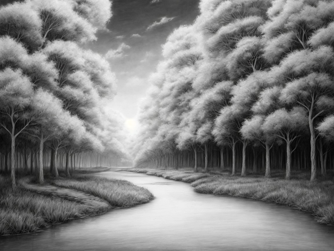 Prompt: This is a painting depicting a rainy scene with a muted, cool color palette dominated by blues and grays, evoking a calm, overcast atmosphere.