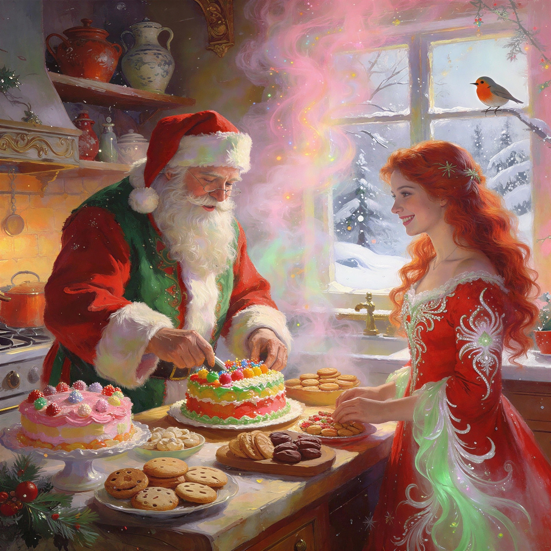 Prompt: Portrait of a gentle young Ariel, a mermaid Girl , Festive Christmas New Year style , New Year festive atmosphere , The style is Neo noir , sentimentalism ,elegant, Impressionism , Hans Holbein , Auguste Renoir , Franz Xaver Winterhalter , vintage, oil, masterpiece, high detail, art station