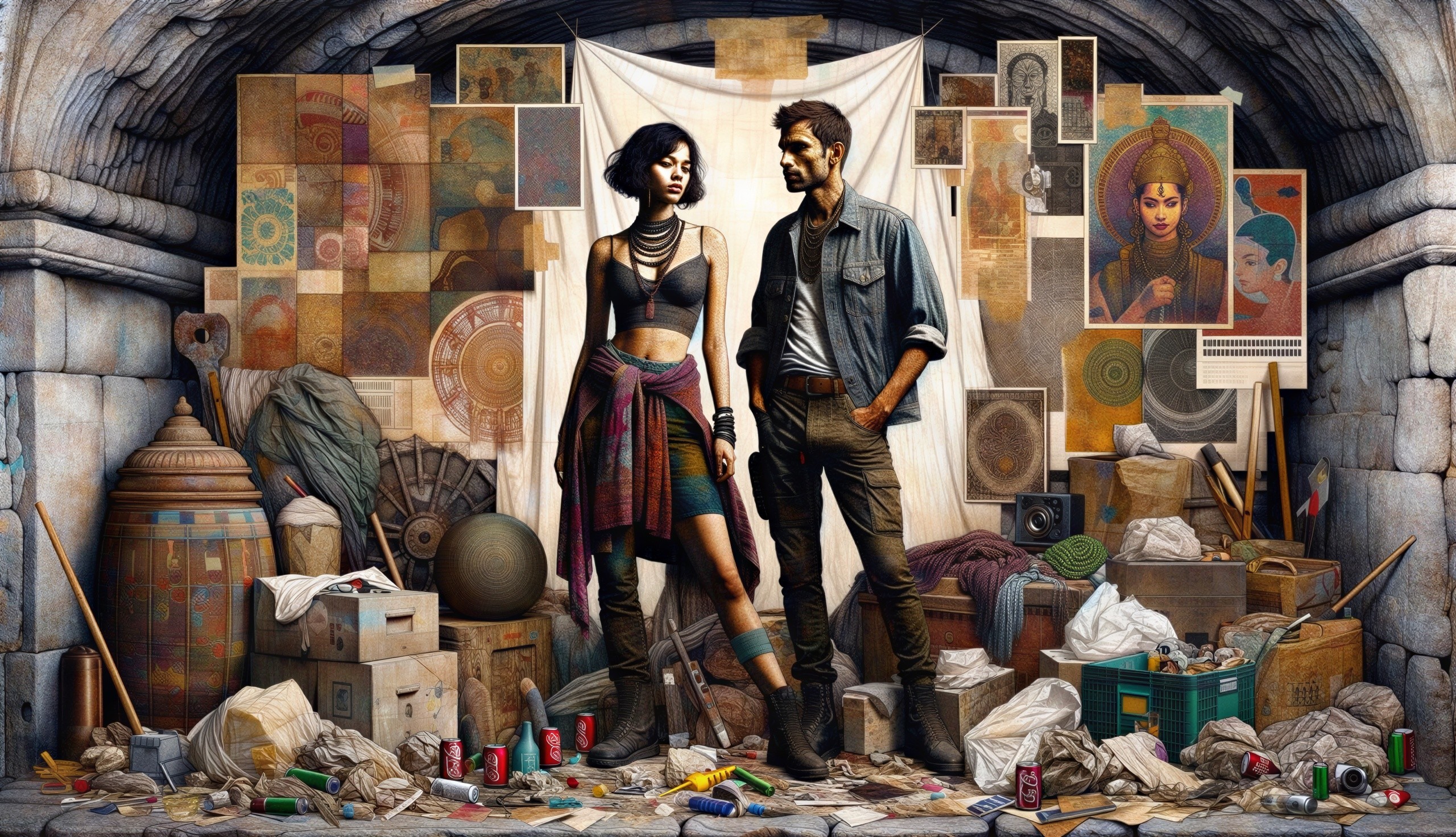 Prompt: I am treacherous with old magic and the noon’s new fury. Old Shanghai. foggy nostalgia, portrait in Burnt umber and soft plum, salmon gold, smoke and mirrors, patina of, battery acid, art brut, moody, somber, desaturated colors, in the style of Paul Klee, Arthur Rackham Dark and moody oil painting of a woman with piercing black eyes, inspired by the works of John Singer Sargent and Edgar Degas, long shot, realistic texture, dramatic lighting, intricate details on clothing and Magical woman fading tones of melancholy and summer nostalgia, soulful portrait, in burnt umber, plutonium, patina of mercury glass, tea stains, art brut, moody, somber, desaturated colors, in the style of Paul Klee, Banksy, Arthur Rackham.