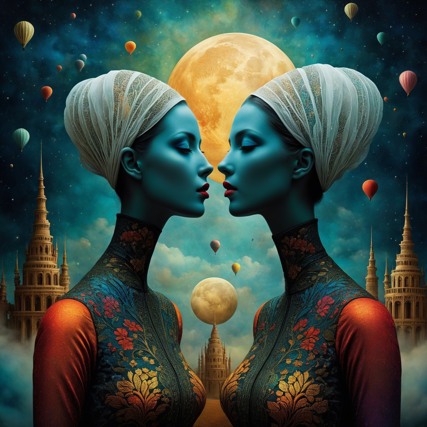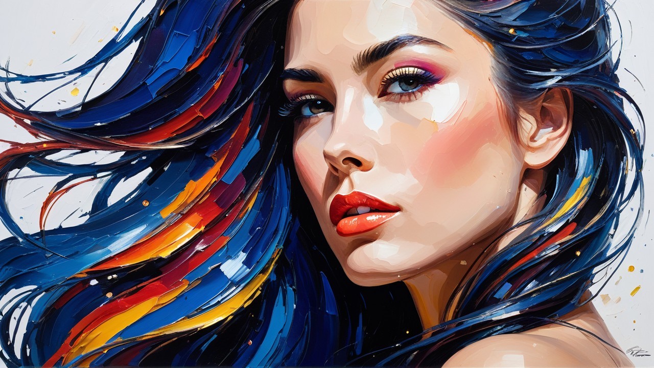 flowing long hair, entirely composed of heavy impasto strokes in vivid colors with sparkling highlights. The composition should be elegant, expressive, and convey the emotion of love against a white background. Create a masterpiece scene featuring a unique and frightening-beautiful-Queen-armed-warrior biomechanical sapphire wall . The wall is made of transistors, gears, pipes, and organic shapes. The design should be sophisticated, emphasizing the nature of the wall while maintaining a polished and refined look