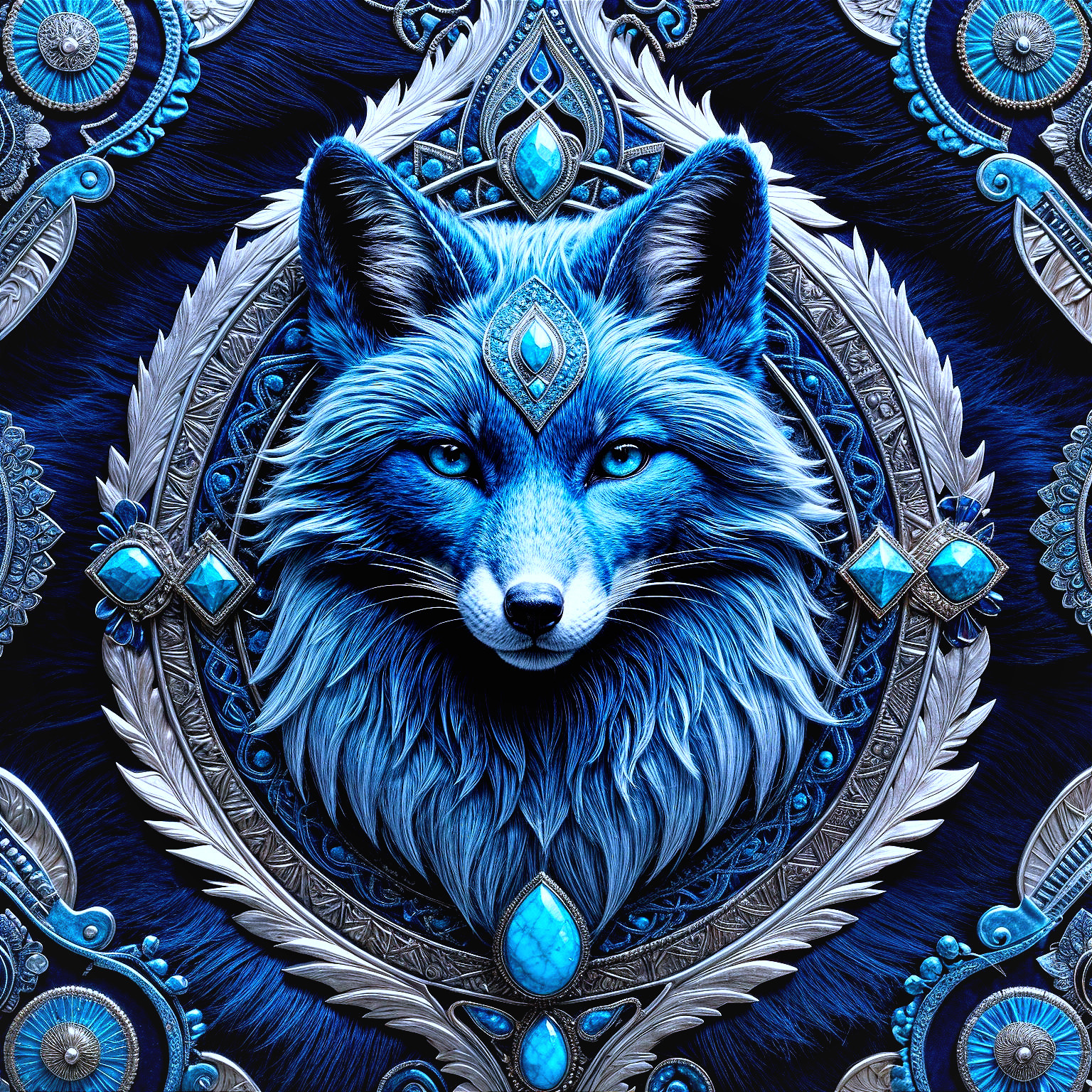 Prompt: A fantastic stunning scene, enigmatic indigo fluffy Fox . It has mesmerizing fur, with a distinct shade of pale blue, have a captivating appeal. The indigo fur with shimmering turquoise accents on it decorated with metallic silver patterns that interweave tribal motifs and cosmic symbols. The intricate markings carved into the indigo fur resemble sacred signs of forgotten wisdom, evoking a heritage steeped in cosmic mystery. Illuminated by a mystical, ethereal light that only increases their otherworldliness even more. Their presence, so powerful and magnetic, has delighted onlookers for generations, leaving a lasting impression of wonder and amazement. It's radiant silver markings with shimmering turquoise accents reflecting the surreal glow of mystical fluffy Fox aura, intertwined with celestial constellations in the background. Twinkling stars adorn the portrait, creating an enchanting atmosphere of cosmic allure. Chiaroscuro technique is enhancing depth and texture. To capture such a scene in high-quality digital art, painters such as Michael Whelan, John Jude Palencar or Stephanie Pui-Mun Lo would excel. Octane render, depth of field (dof), high dynamic range (hdr) lighting, texture detail enhancement, global illumination (gi), post-processing effects, crisp quality enhancements.
