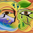 Prompt: (A masterpiece of unparalleled excellence), (("A vibrant, abstract landscape features colorful pyramids beneath a radiant sun. Spirals and circular patterns fill the sky, while a sleek white airplane glides through the scene". 3D view, Colorful small stipple texture, Abstract expressionism surrealism, Merging Pop art and concept art)), Inspired by the style illustrations of Dee Nickerson, Edward Gorey and Tomasz Setowski, Use stunning color oil drawing on textured paper, As if created By Debbie Criswell, Catrin Welz-Stein, Gediminas Pranckevicius, Kate Beaton, Deborah Azzopardi, Laura Callaghan. (Full Size image)