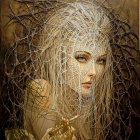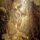 Prompt: Creating a painting "Witches" in the style of artist Ivan Marchuk is, first of all, his unique author's technique, which is called "plottanism." This style consists of applying thin intertwined lines of paint that form the image, creating a dense texture similar to a spider's web or a ball of threads.