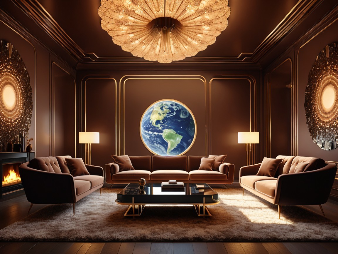 Prompt: epic realistic 3d render of a biophylic modern living room by Lotte Reiniger depicted in the perfect fractal style of Mandelbrot and Huy Duyhn, glowing earth colors, art deco background by Mackintosh in metalic colors