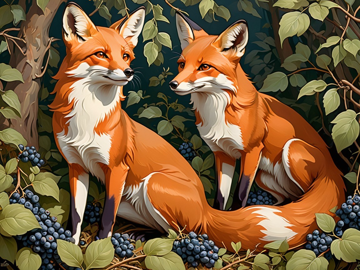 Prompt: A fox wearing glasses loves a black rabbit. Blue hearts with aquamarine and gold accents. The image is artistically designed and has a textured look with an abstract mix of cool blues and greens, overlaid with touches of gold leaf and pale, intricate floral or lace patterns, with delicate hints of massive icebergs in the background, giving it an ethereal feel. The overall atmosphere of the piece was meant to be soft and painterly, with a mosaic of bright and soft colors that highlights the youthful innocence of the subject.