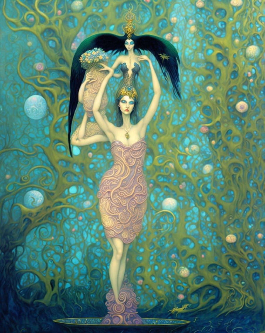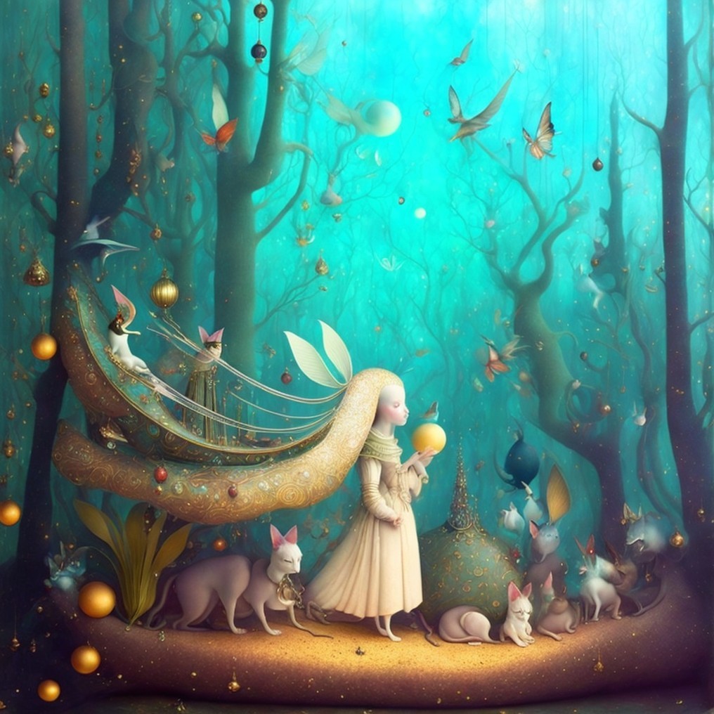 Prompt: In the style of Nathalie Picoulet, an awe-inspiring watercolor painting transports viewers to a magical forest. At the center of this enchanting scene stands a breathtakingly beautiful woman, her ethereal presence suffused with the essence of nature. Delicate brushstrokes depict her flowing hair intertwined with vibrant wildflowers, each petal meticulously detailed. Her emerald eyes emanate a captivating radiance, perfectly mirroring the lush greenery surrounding her. This meticulously crafted image evokes a sense of wonder, inviting spectators to explore the mystical world captured within this stunning watercolor masterpiece.
