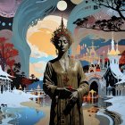 Prompt: Echoes of the Street: Capture the essence of street music and culture in graffiti, with instruments and notes blending into urban elements. Combine Banksy’s silhouette art and Shepard Fairey’s rhythmic color patterns for a lively composition.