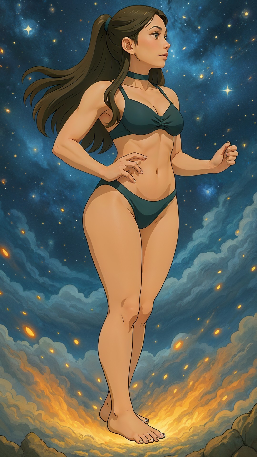 Prompt: A gorgeous goddess with radiant Indian-toned skin stands gracefully in the cosmos. Galaxies swirl around her in luminous motion, their stars casting soft light across her serene face. She has extremely long, flowing hair that drifts like starlight through the cosmic winds. In her hands, she holds a glowing star that illuminates her red flowing dress adorned with intricate gold accents. The background shimmers with nebulae and galaxies. Ethereal, divine, cinematic lighting, ultra-detailed, fantasy illustration. Vivid colors