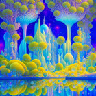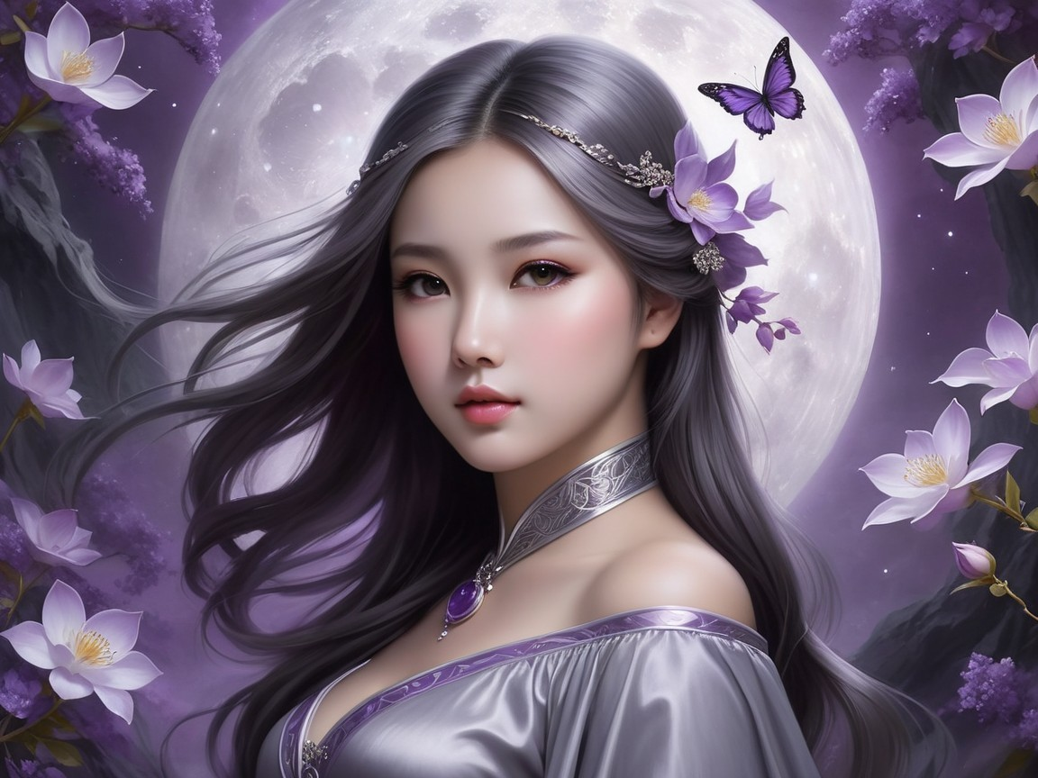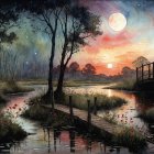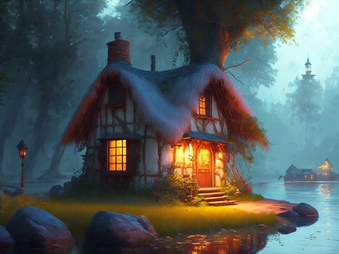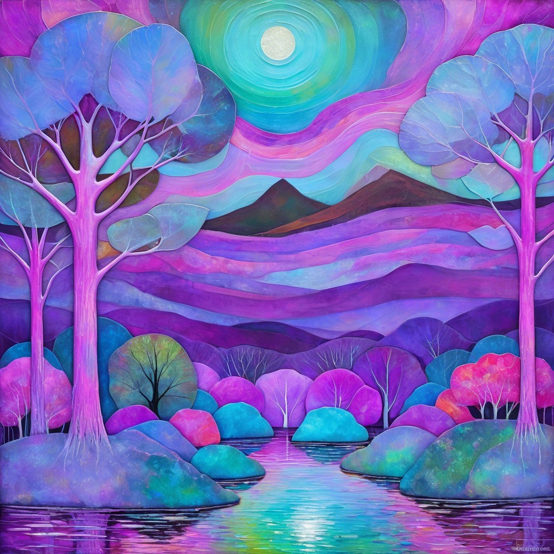 add a lake where the moon is reflected in the water. the month the trees form shadows reflected in the lake. the weather is completely clear, a little moss wife brew, by the sow vegetation of downhammer
