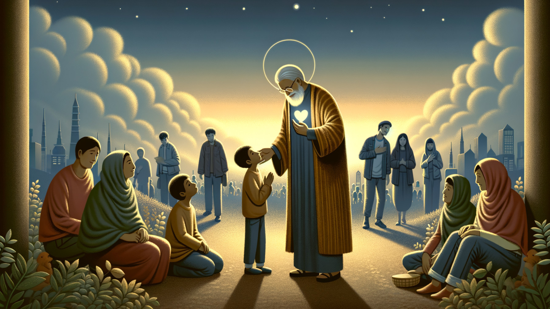 Prompt: Create an image of an elderly man with deep-set, intense blue eyes, and a somber expression on his wrinkled face, reflecting wisdom and a hint of melancholy. He has a prominent forehead and thin, wispy white hair, emphasizing his age. Dress him in a dark, tattered coat over a dark shirt, adding to the serious tone.