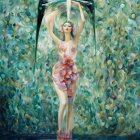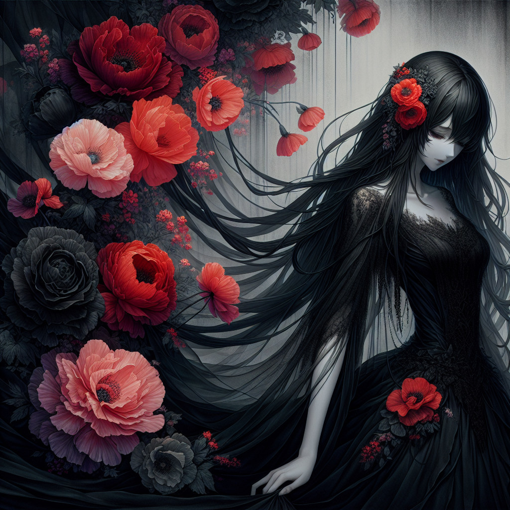 Prompt: ((Masterpiece)), ((A stunning figure poses gracefully on a rocky outcrop, wearing a vibrant orange floral dress. Surrounding her is a colorful floral arch, with majestic mountains and a sunset backdrop)), (High Detailed, Masterpiece, Stunning, Beautiful)). By Takato Yamamoto, Adam Hughes, Tim Burton, Tomasz Setowski, Yoshitaka Amano, Zdzislaw Beksinski and Zentangle Style . The piece should evoke a sense of wonder and awe, utilizing techniques reminiscent of colorful pastel and and ink. Full Length Image.